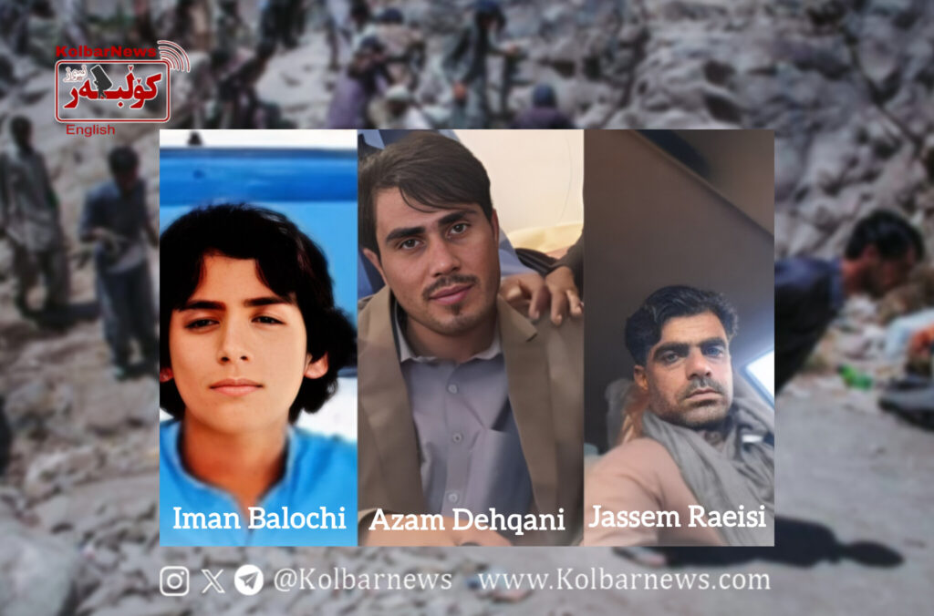 The deceased Baloch Sukhtbars have been identified as: Jassem Raeisi, son of Nazar Mohammad, married and a father, from the village of Kajom in Sarbaz County, Iman Balochi, 13 years old, a student, son of Halim, Azam Dehqani, son of Mohammad Ali, both from the village of Gazmanzel in Bahu Kalat district of Dashtiari County.